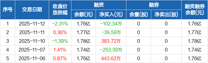 奥精医疗:融资净偿还102.34万元,融资余额1.76亿元(11-12)