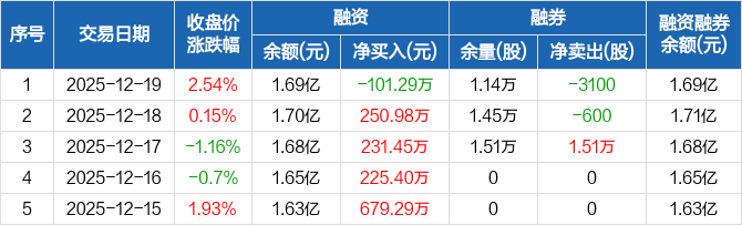 奥精医疗:融资净偿还101.29万元,融资余额1.69亿元(12-19)