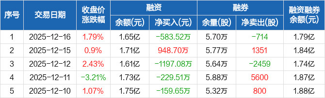 惠泰医疗:融资净偿还583.52万元,融资余额1.65亿元(12-16)