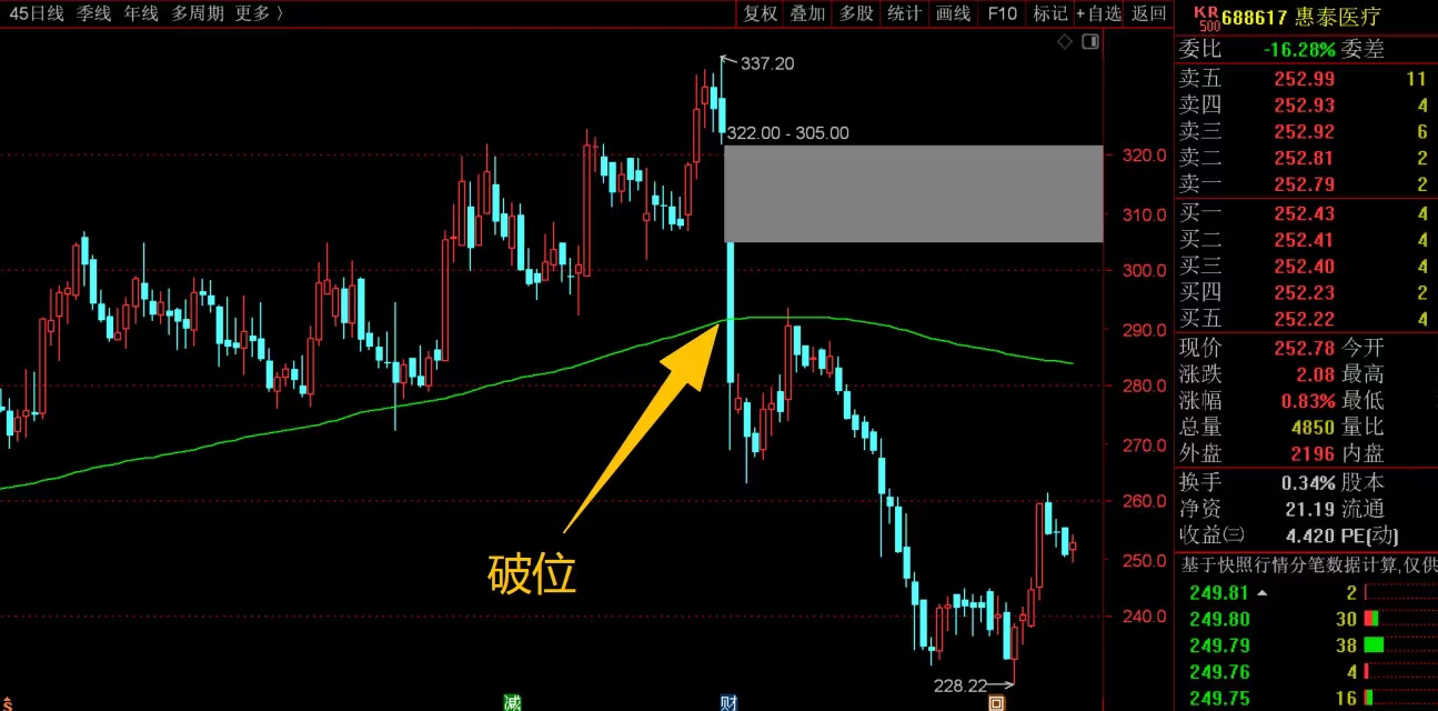 $惠泰医疗(SH688617)$ 中期趋势走坏了,主要是前期高位回落,跌破了大均线位置后没有马上拉升起来站稳,形成了破位走势,当时就得需要大幅减仓应对,不然持有到现在很被动,目前来看还是下降通道中,没必要参与,也不要乱加仓。#复盘记录# #炒股日记#