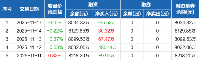 三旺通信:融资净偿还95.53万元,融资余额8034.32万元(11-17)