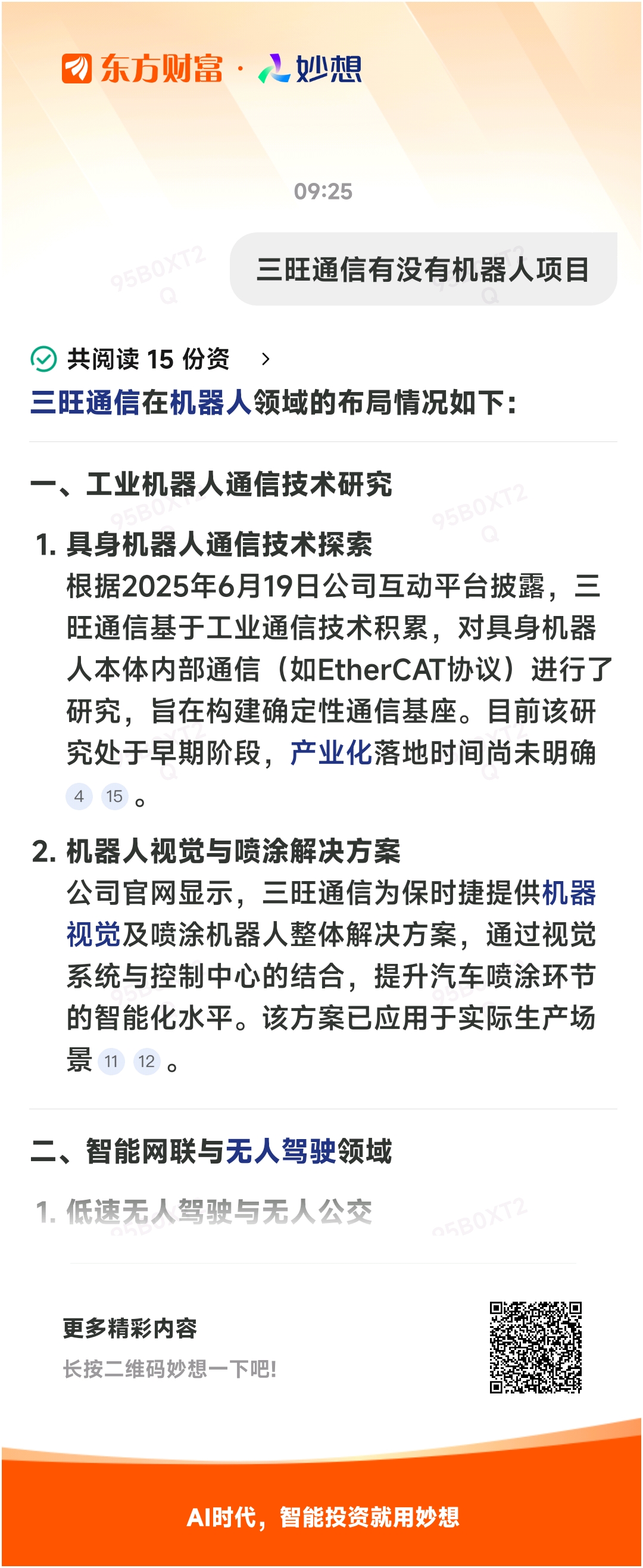 妙想一下:三旺通信有没有机器人项目