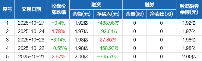 安凯微:融资净偿还488.98万元,融资余额1.92亿元(10-27)