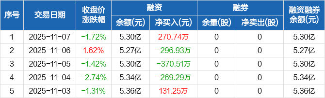 阳光诺和:融资净买入270.74万元,融资余额5.3亿元(11-07)