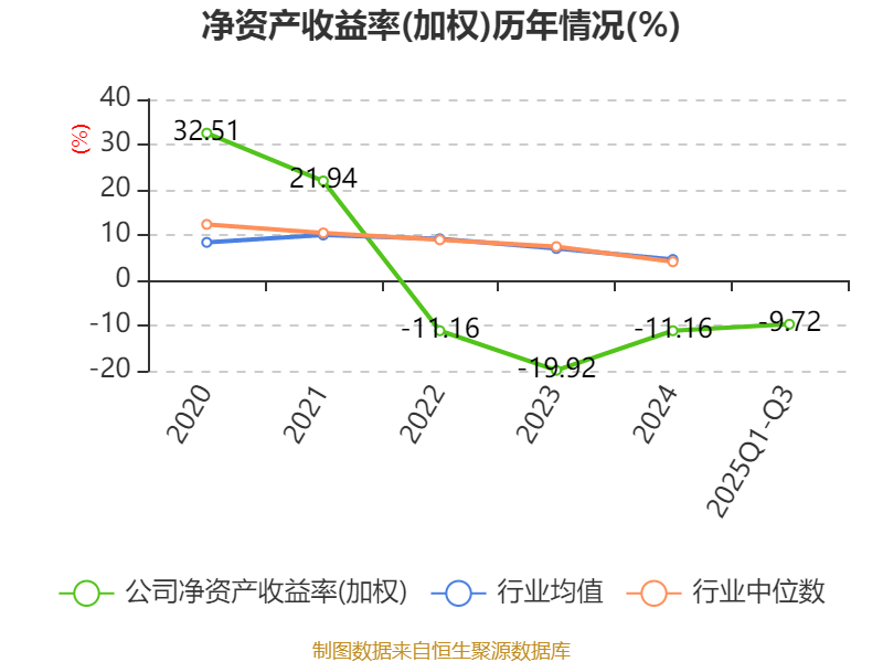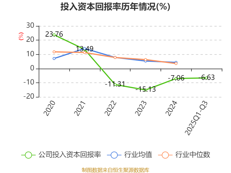 盈利能力方面, 2025年前三季度公司加权平均净资产收益率为-9.72%,同比下降4.5个百分点。公司2025年前三季度投入资本回报率为-6.63%,较上年同期下降3.35个百分点。