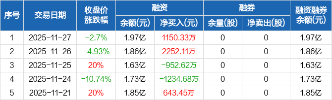 禾信仪器:融资净买入1150.33万元,融资余额1.97亿元(11-27)