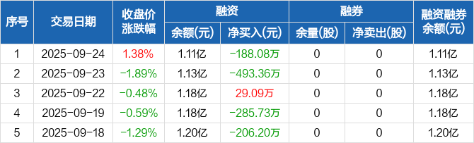 双元科技:融资净偿还188.08万元,融资余额1.11亿元(09-24)