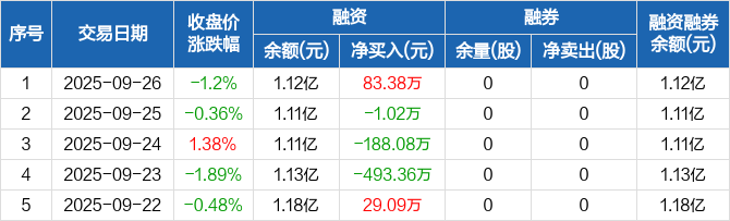 双元科技:融资净买入83.38万元,融资余额1.12亿元(09-26)