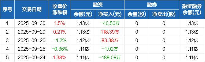 双元科技:融资净偿还40.56万元,融资余额1.13亿元(09-30)