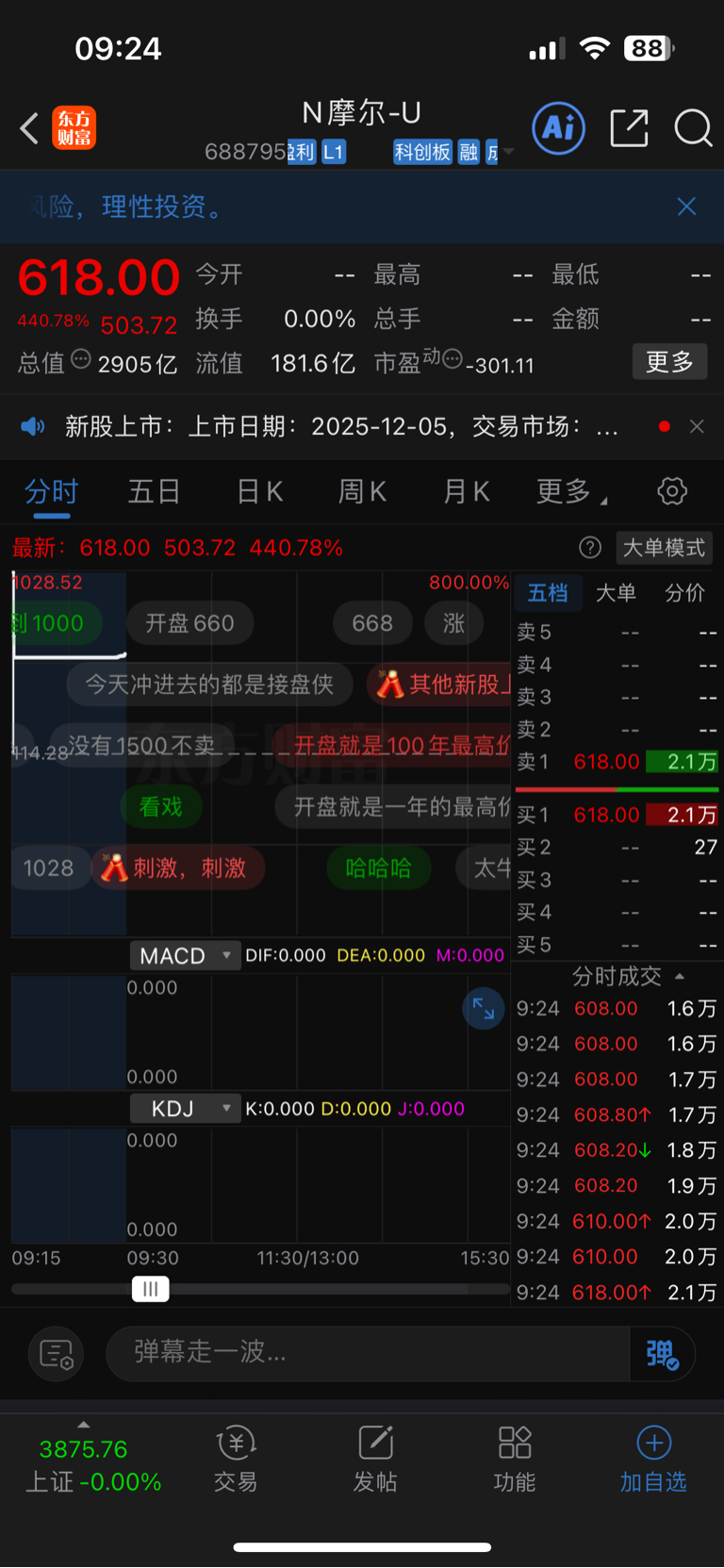 你,同样是百元股上市,摩尔涨那么多,你确一直跌。