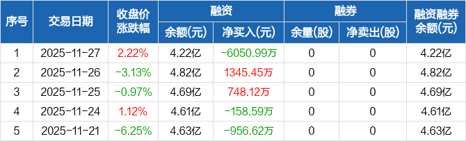 精智达:融资净偿还6050.99万元,融资余额4.22亿元(11-27)