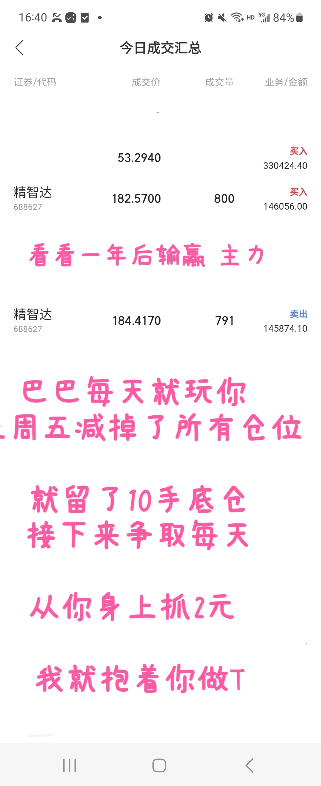 无所谓。上周五走了所有仓位就留了十手陪你玩到明年年底昨天半小时2k今天半小时1k