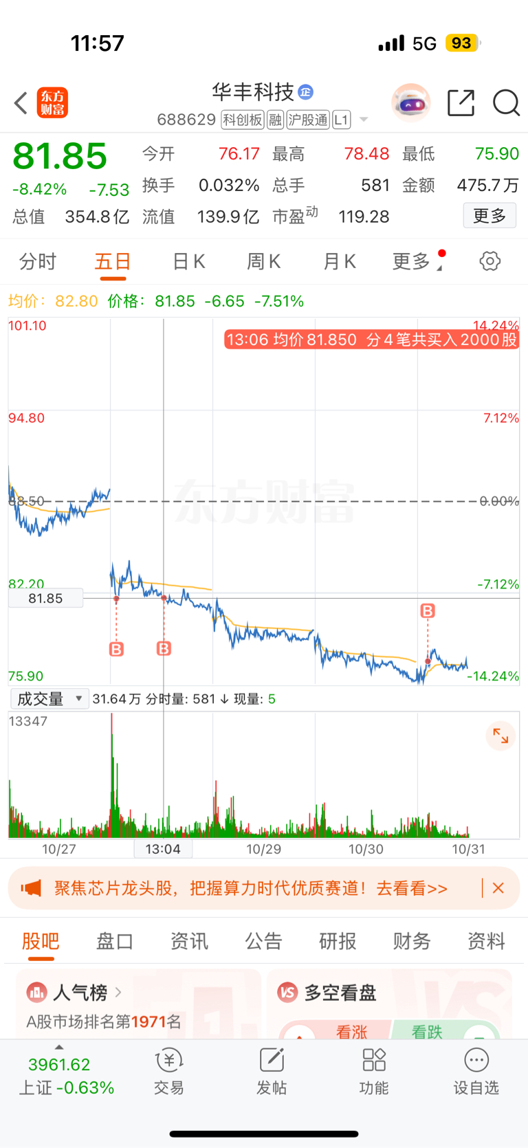 $华丰科技(SH688629)$ 最终还是折这里了,从100开始,每次买入2000股,持仓32000股,乏了,补不动了