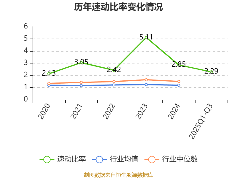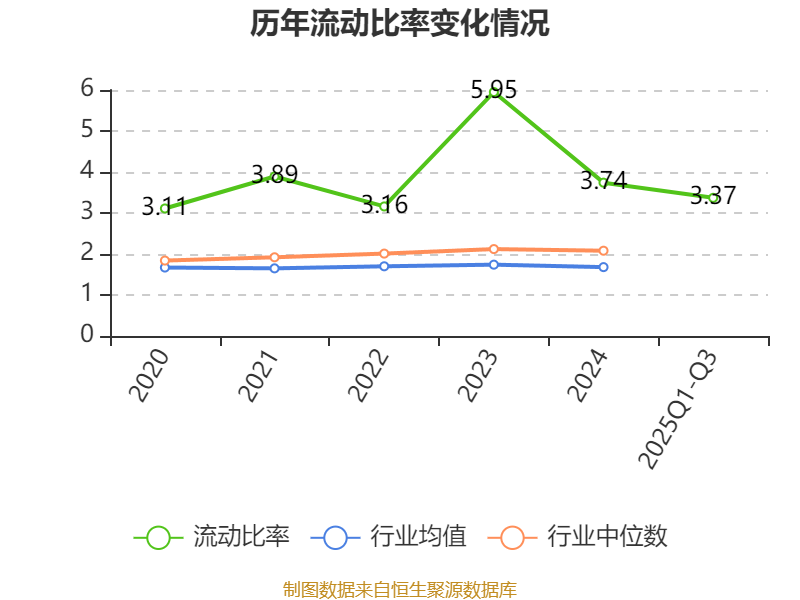 2025年前三季度,公司流动比率为3.37,速动比率为2.29。