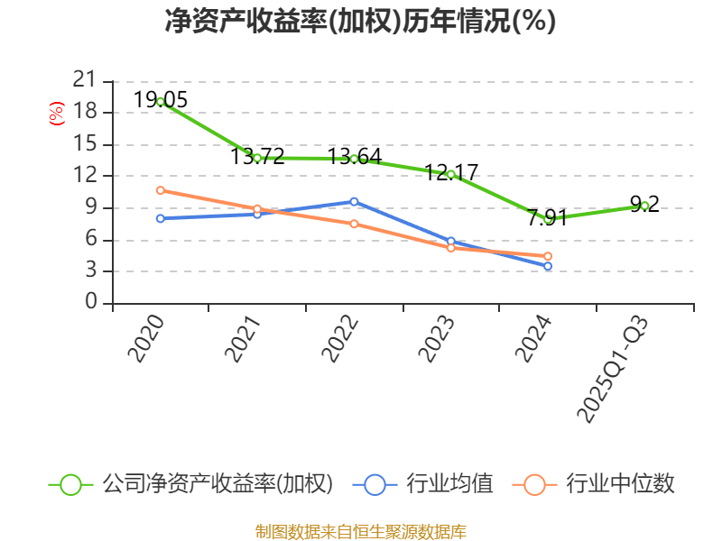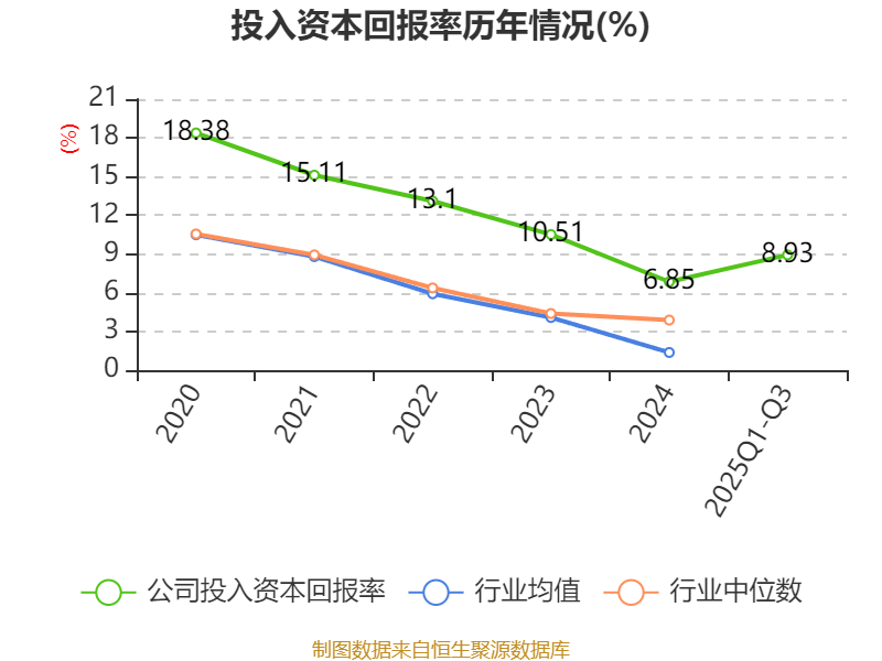 盈利能力方面, 2025年前三季度公司加权平均净资产收益率为9.2%,同比上升1.86个百分点。公司2025年前三季度投入资本回报率为8.93%,较上年同期上升2.08个百分点。