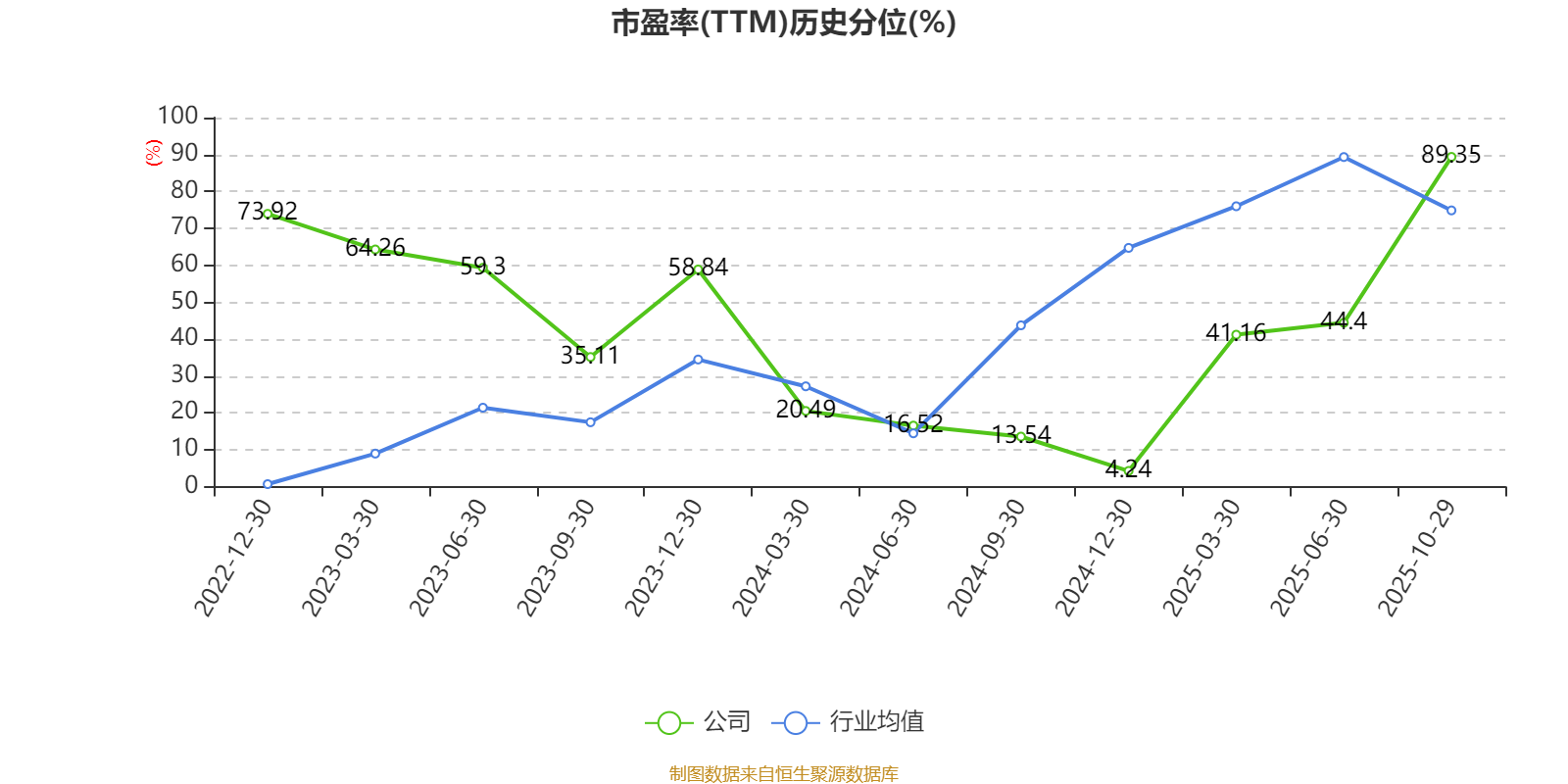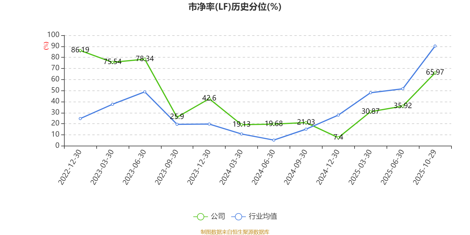 市盈率、市净率为负时,不显示当期分位数,会导致折线图中断。