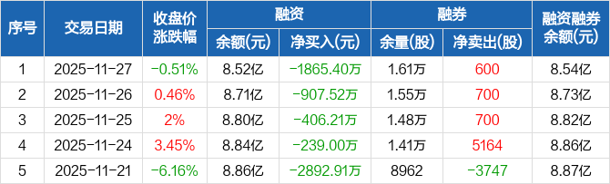 芯碁微装:连续5日融资净偿还累计6311.05万元(11-27)