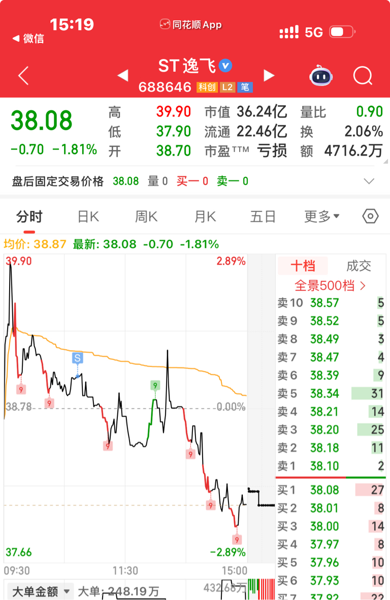 $ST逸飞(SH688646)$ 走了,到头了