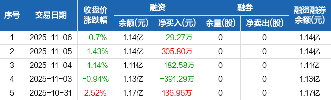 盛邦安全:融资净偿还29.27万元,融资余额1.14亿元(11-06)