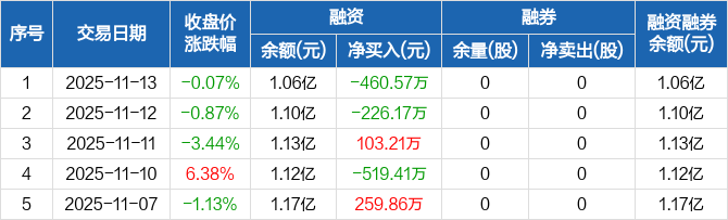 盛邦安全:融资净偿还460.57万元,融资余额1.06亿元(11-13)
