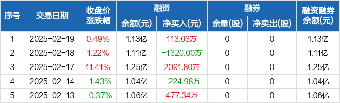 京仪装备:融资净买入113.03万元,融资余额1.13亿元(02-19)