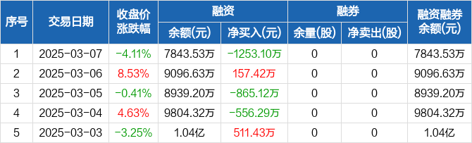 京仪装备:融资净偿还1253.1万元,融资余额7843.53万元(03-07)