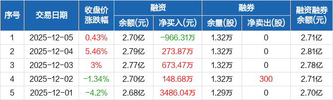 京仪装备:融资净偿还966.31万元,融资余额2.7亿元(12-05)