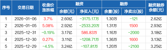 京仪装备:融资净偿还3175.17万元,融资余额2.6亿元(01-06)