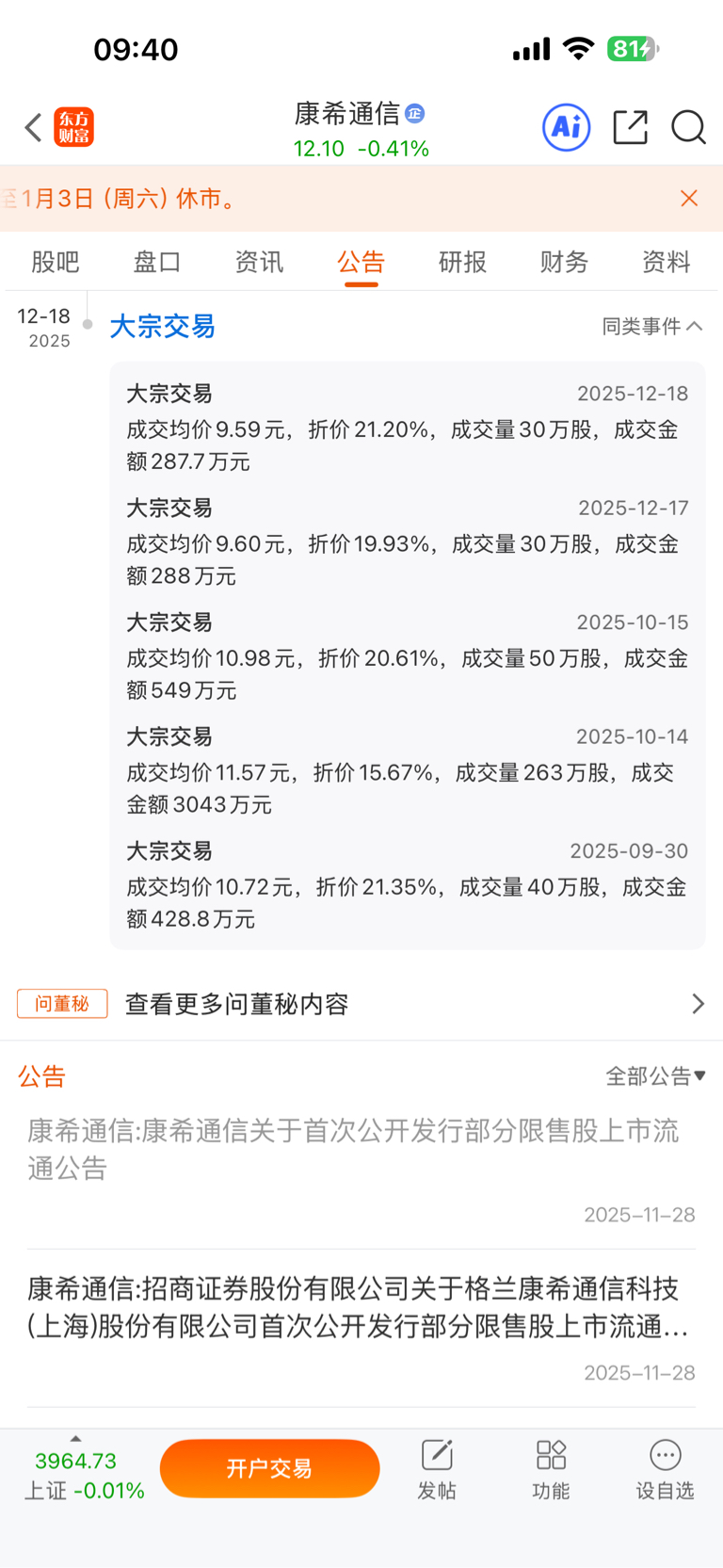 $康希通信(SH688653)$ 全是大幅折价,这样的股票未来走势都很差
