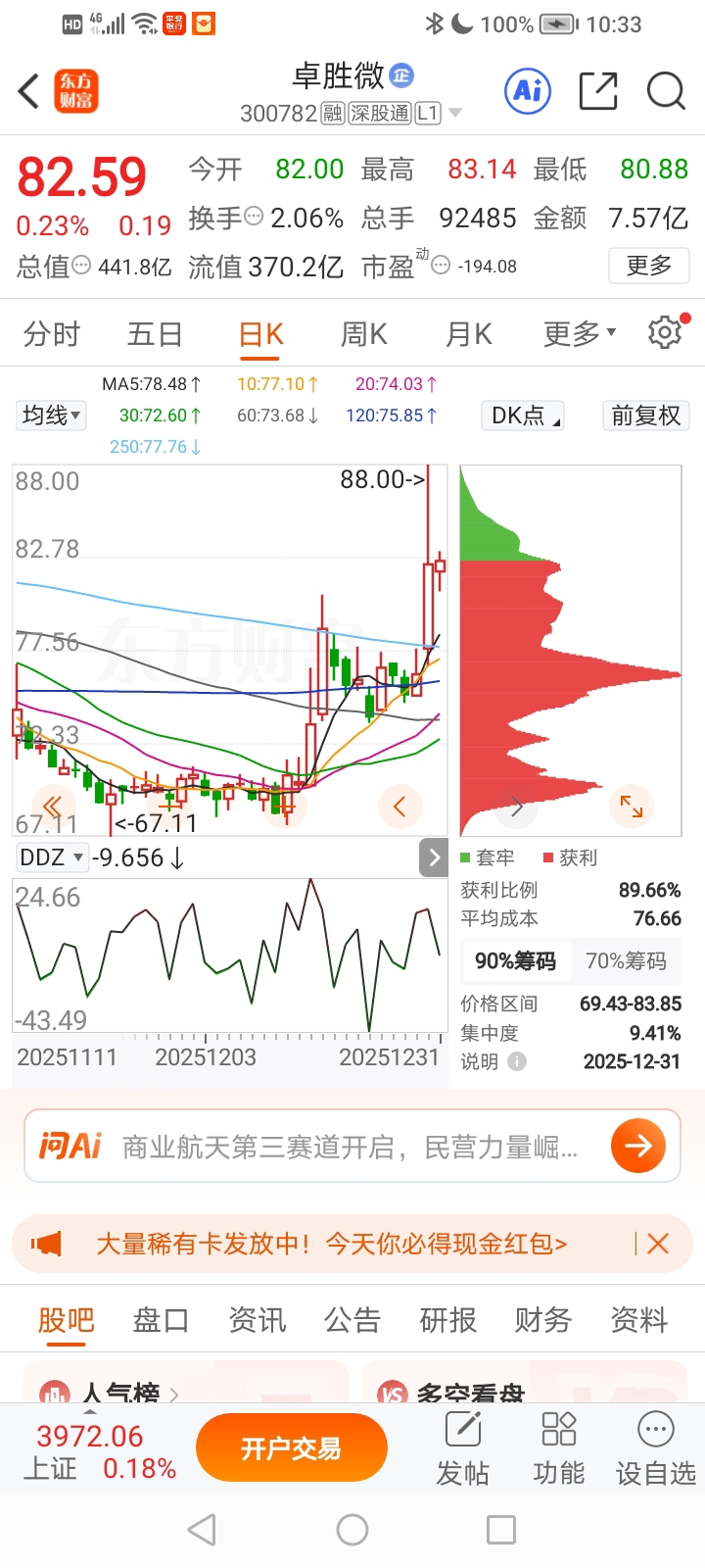 看看卓胜微最近涨了多少,康希还不赶紧补涨个大的