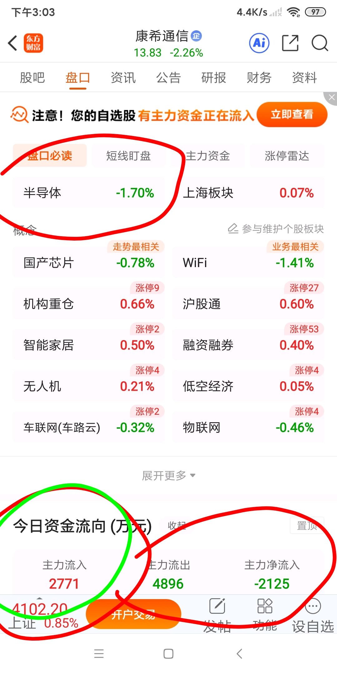 $康希通信(SH688653)$ 阴包了昨天的阳两天赚了八十多点上证指数亏的是钱跑不赢所属概念板块跌就领头羊天天缩量砸盘大手出货只能这样解释这垃圾股是不是有暗雷还没爆机构拼命出货