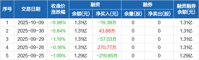 迅捷兴:融资净偿还19.38万元,融资余额1.31亿元(10-09)