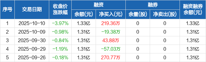 迅捷兴:融资净买入219.36万元,融资余额1.33亿元(10-10)