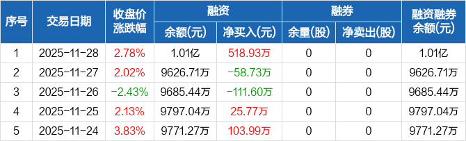 迅捷兴:融资净买入518.93万元,融资余额1.01亿元(11-28)