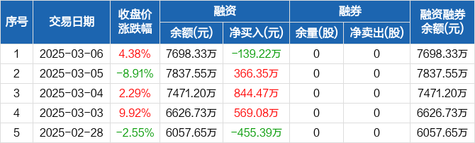 浩欧博:融资净偿还139.22万元,融资余额7698.33万元(03-06)
