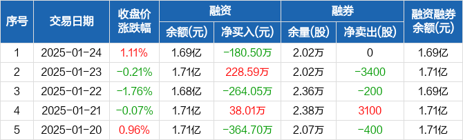 悦康药业:融资净偿还180.5万元,融资余额1.69亿元(01-24)