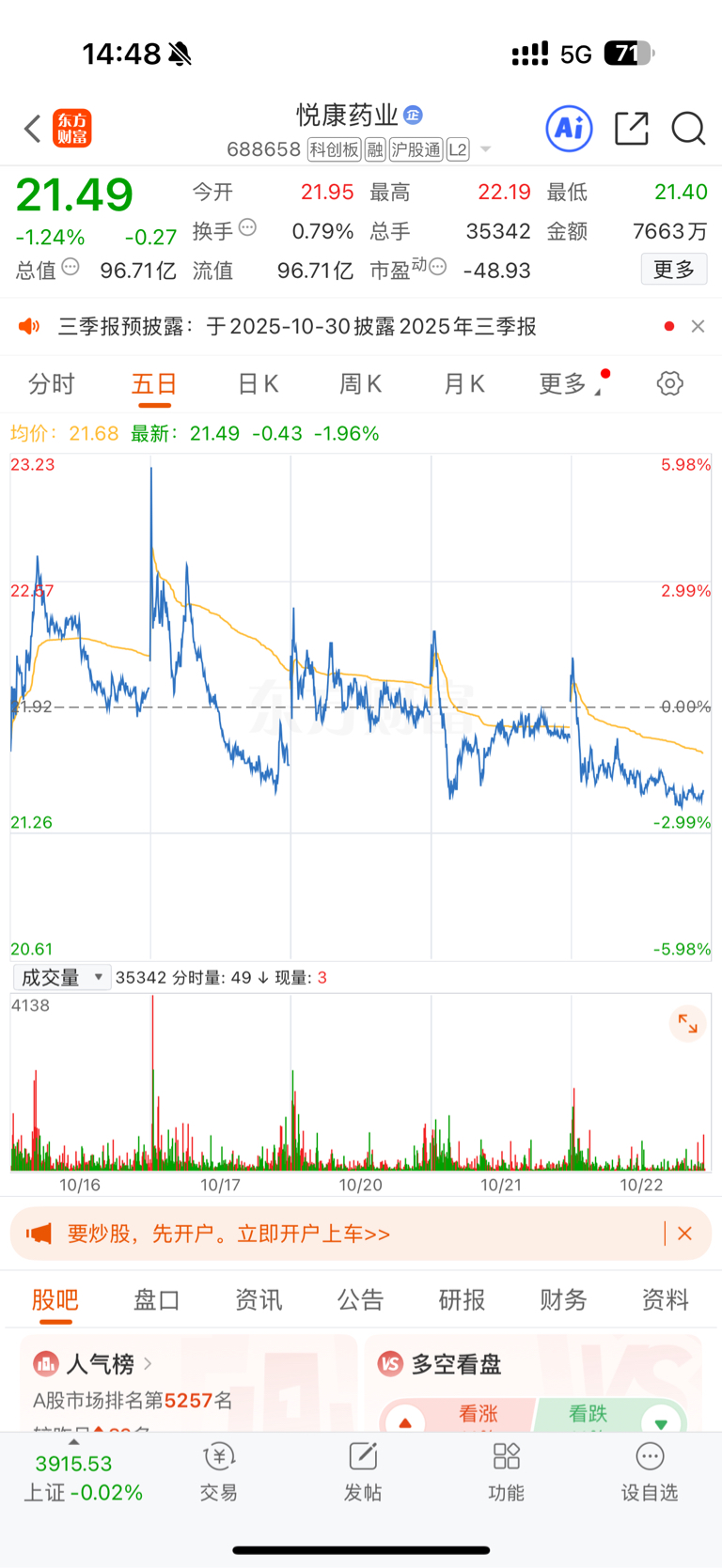 $悦康药业(SH688658)$ 早上卖,下午买,哎