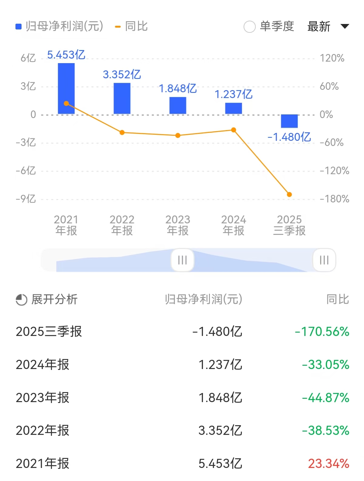 2025年,悦康药业业绩进一步下滑。根据悦康药业发布的2025年三季报,前三季度该公司实现营业总收入17.59亿元,同比下降41.20%;归母净利润亏损1.48亿元,上年同期盈利2.1亿元;扣非净利润亏损1.68亿元,上年同期盈利2.02亿元。