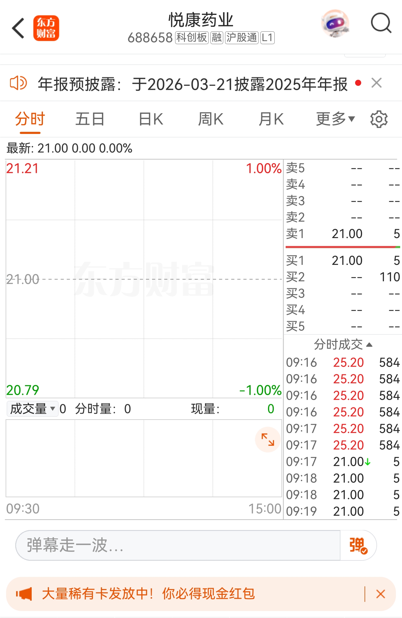 $悦康药业(SH688658)$ 集合竞价出现涨停+20%,今天会有不俗表现?加加油吧