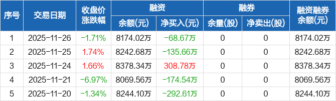 元琛科技:融资净偿还68.67万元,融资余额8174.02万元(11-26)