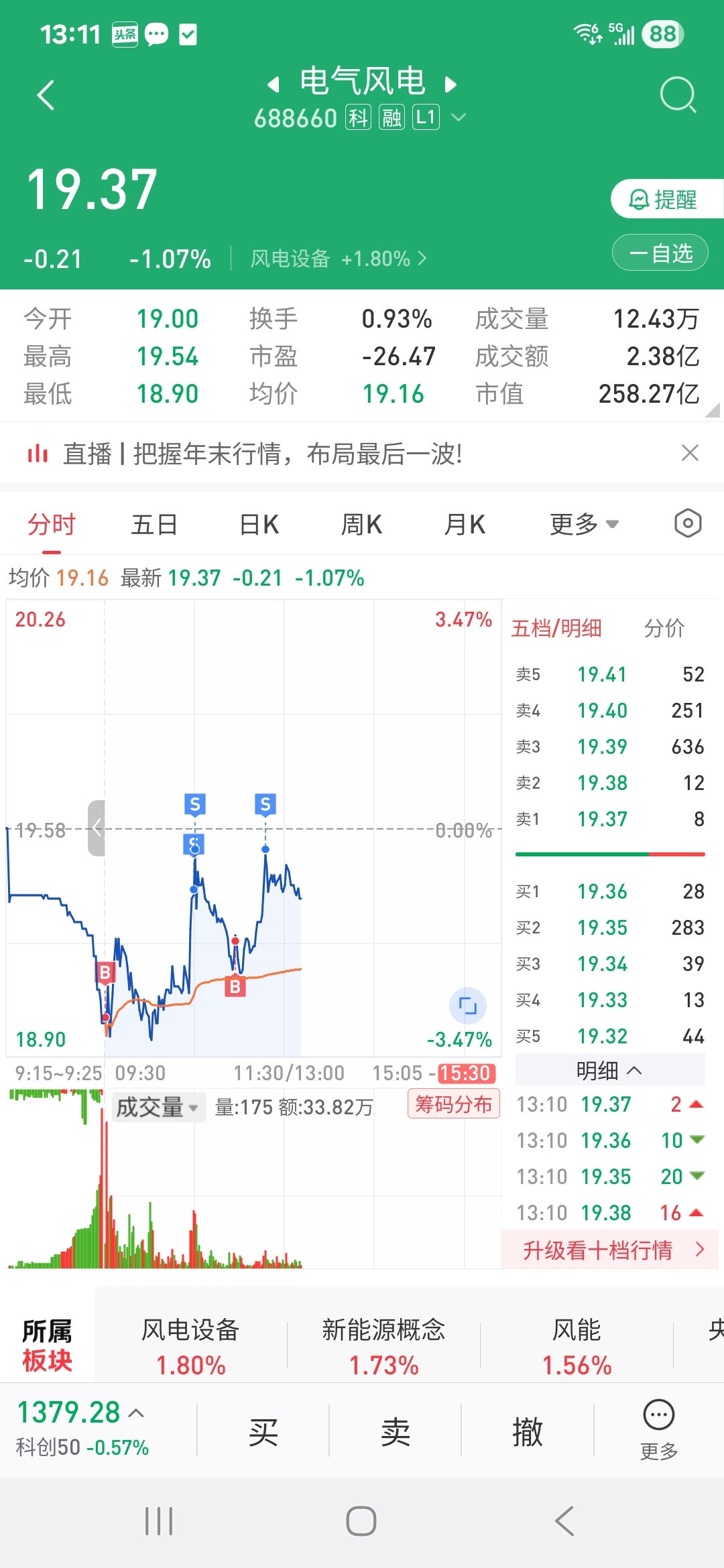 $电气风电(SH688660)$ 这只股适合做T,降低持股成本。