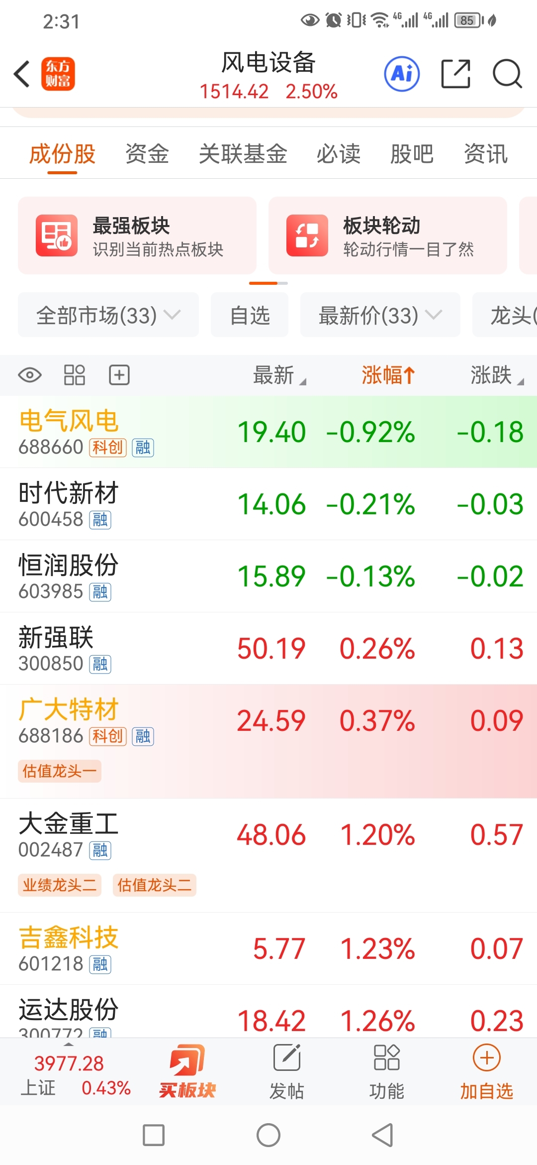 $电气风电(SH688660)$ 板块倒数第一,