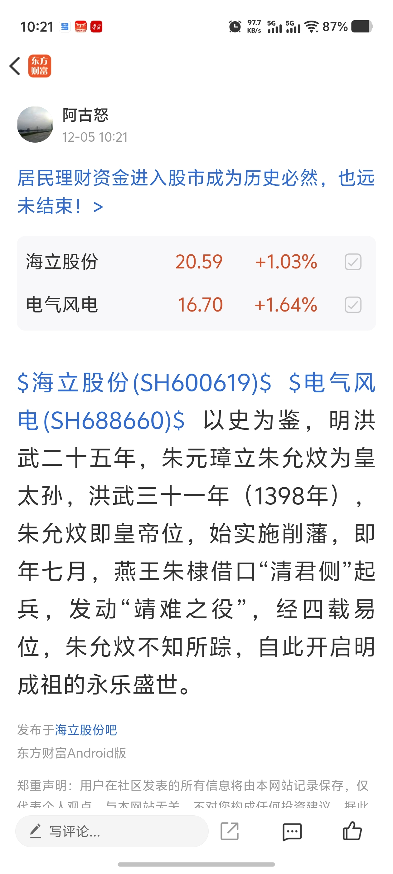 温馨提示: 1.根据《证券法》规定,禁止编造、传播虚假信息或者误导性信息,扰乱证券市场;2.用户在本社区发表的所有资料、言论等仅代表个人观点,与本网站立场无关,不对您构成任何投资建议。用户应基于自己的独立判断,自行决定证券投资并承担相应风险。《东方财富社区管理规定》