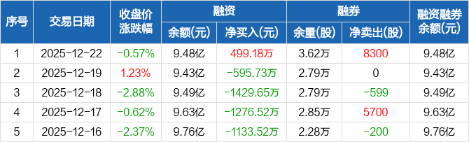电气风电:融资净买入499.18万元,融资余额9.48亿元(12-22)