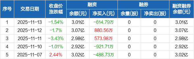 和林微纳:融资净偿还614.79万元,融资余额3.01亿元(11-13)