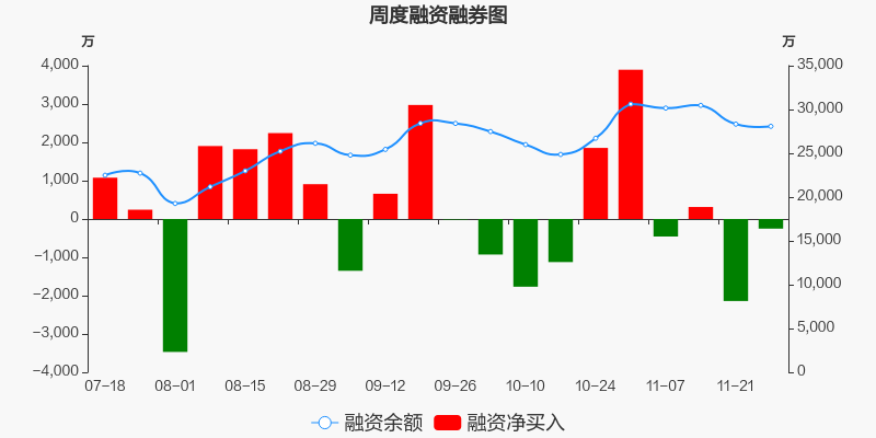 和林微纳本周(2025/11/24-2025/11/28)累计涨幅达2.25%,截至11月28日最新股价报收43.10元。从增量上来看,11月24日至11月28日融资买入交易规模4427.84万元,融资偿还规模4678.97万元,期内融资净偿还251.13万元。从存量上来看,截止11月30日,和林微纳融资融券余额2.81亿元,其中融资余额规模2.81亿元,融券余额规模0元。