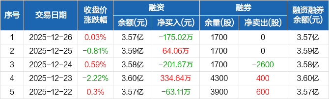新风光:融资净偿还175.02万元,融资余额3.57亿元(12-26)