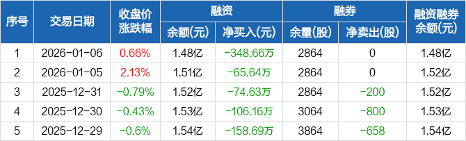 四方光电:连续5日融资净偿还累计753.77万元(01-06)