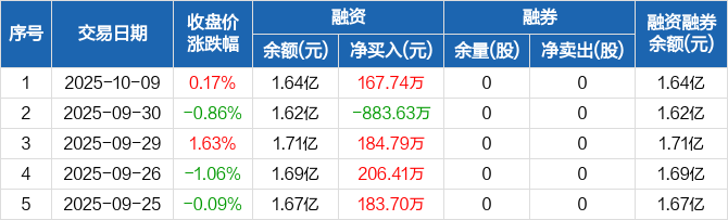 菱电电控:融资净买入167.74万元,融资余额1.64亿元(10-09)