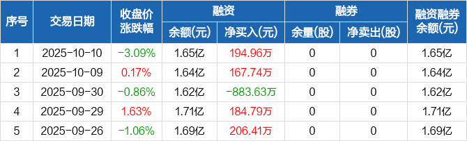 菱电电控:融资净买入194.96万元,融资余额1.65亿元(10-10)